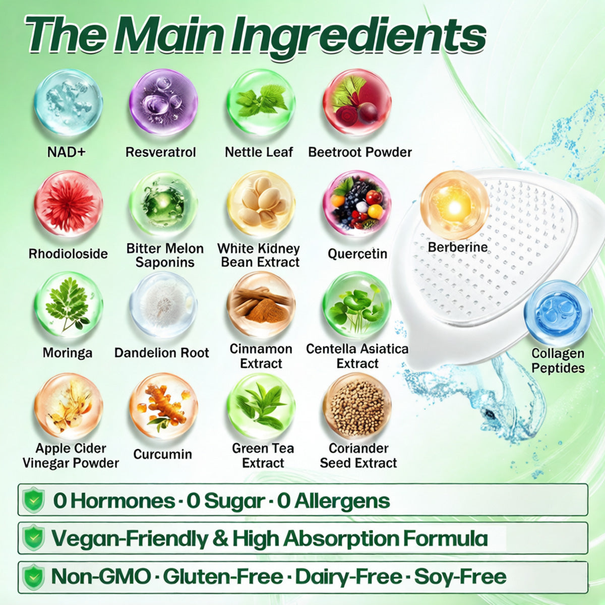 This 100% natural, plant-based formula is scientifically designed to work harmoniously without conflict and can be safely used alongside other medications or foods. It is vegan-friendly and highly bioavailable, containing no hormones, sugar, or common allergens, and is non-GMO, gluten-free, soy-free, and free from artificial colors, flavors, or preservatives.