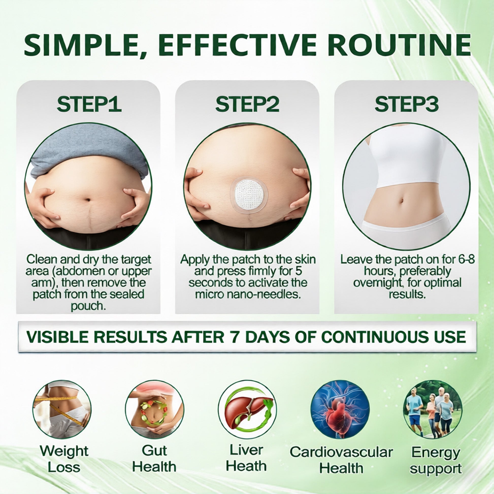 ๐ฉน Just one patch daily. Apply directly to the skin โ no pills, no injections, and no extreme dieting required.